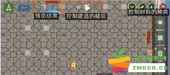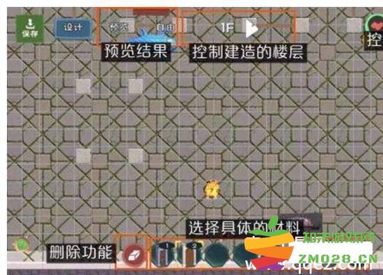 3、此外,建房子之前选择你要建造房子的楼层,这里我们选择1楼,在右侧可以选择建筑材料的种类,有:【墙】【地板】【门】【其他】四个分类,选择分类后,在界面下方可以选择你拥有的具体材料,点击后即可选中。,如下图所示: