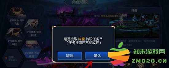 2、在窗口中选择要转职的角色点击右下角的【选择职业】即可接取转职任务,然后跟随转职任务的提示完成任务。