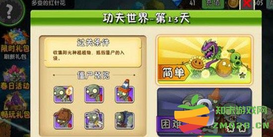 功夫世界第十三天过关条件:收集阳光种植植物,抵挡僵尸入侵