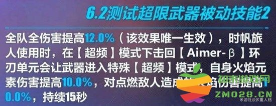 使用武器技后能够提供全伤提升,持续时间长且能够刷新,除了阿波尼亚外的环刃角色都能使该加成常驻。并且武器技命中时还能够提供一些蚊子腿倍率的火伤,略微补充伤害。