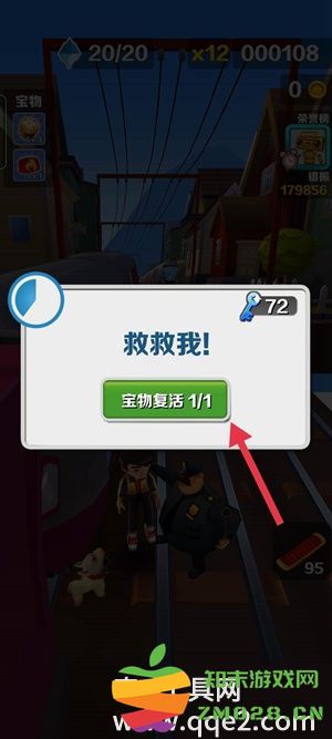 4.如果酷跑时看到前方全是金币,直接撞墙让保安捉住,然后点击复活,即可成功躲避金币。