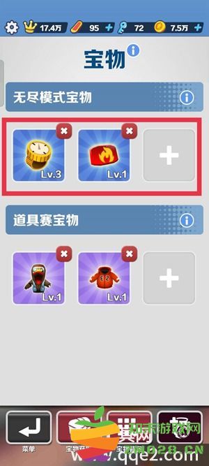 1.在宝物页面,玩家只有装备王子的纯金手表和忍者火焰纹章,才能提高角色躲避金币的速度。