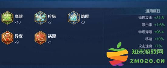3、铭文搭配:10异变、10狩猎、10鹰眼