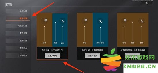 2、进入设置界面,接着点击左侧第二个“操作设置”,点击第一个“自定义布局”