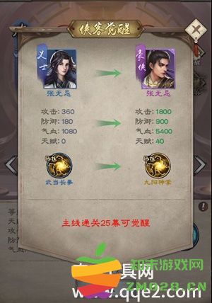 新手阶段记住两个关键时间点——25幕、35幕。通关25幕可以迎来主角张无忌首次的觉醒,通关35幕可以迎来主角的首次觉醒,他们会从蓝色的义士升级为紫色的豪侠,此时实力大增,可助少主再战接下的关卡。