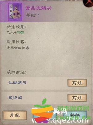 功法从低到高分为绿色、紫色、黄色、橙色、红色,初期建议选择培养紫色、黄色的功法,若少主身有碎银几两,可以选择培养红品功法。