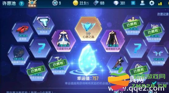 玩家可以通过许愿池进行许愿,运气好的话可以直接获得道具。运气差的玩家,则需要集满许愿池的幸运值,才可以获得稀有道具。