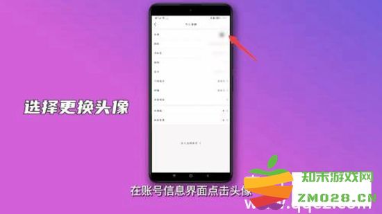在账号信息界面点击头像,选择从相册中寻找头像即可。