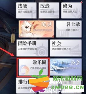 在右上角工具栏选项中找到菜单并点击打开,弹出几个模块,选择左侧靠下的“谕乐圈”模块。