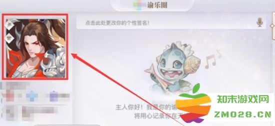 弹出谕乐圈的资料卡片,在该页面可以更改个人基本资料,点击左上角的游戏头像可更改。