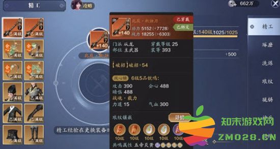 2、装备打造:今天可以进阶最后一个装备副武器,总共可以提升【323*1.35(琢磨)+82(精工)】=518点功力。