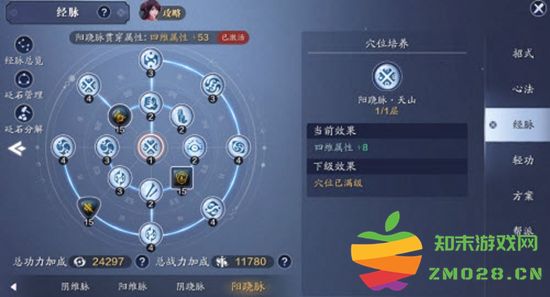 4、经脉提升:120级普升提升77点功力。另外开放8个棱石14升到15级,一个砭石升级需要16.5W经验需要1.65组绿色石母,8个棱石加上普升共需13.5组绿色石母,提升632点功力。经脉部分一共可以提供24297点功力。