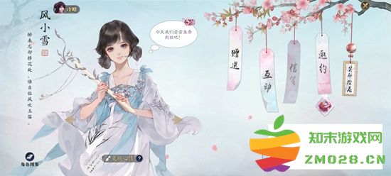 目前游戏内提升风小雪的亲密度的方法一共有四种,第一种是互动,玩家每日将有一次与其互动的机会,互动需要完成一个对话,基本几秒钟就能完成,完成之后玩家将获得两点亲密度以及一个道具礼盒。