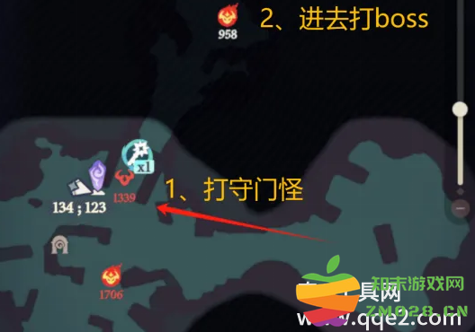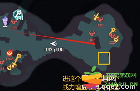 12、完成最后解谜后会传送到下图的位置,拿了增益我们就去下个区域,先不打附近的怪。