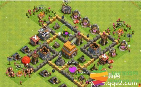 阵型三:这个阵类似风车阵。不过有个缺点就是资源比较密集,容易让人一锅端,但是周边再加强一下防御应该没那么容易被攻破。