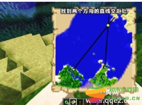 3、找到两个方向的直线交汇处,在此处附近挖掘就可找到末地要塞了。