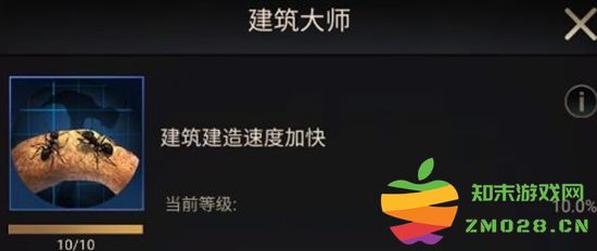最高能提升10%的建筑速度,缩短工蚁建造的“打工时长”,建筑速度越早提升,收益越高。