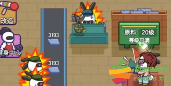 4.在烤鸭车间中,不断点击第一个鼓励兔子可以让他变成巨物化。