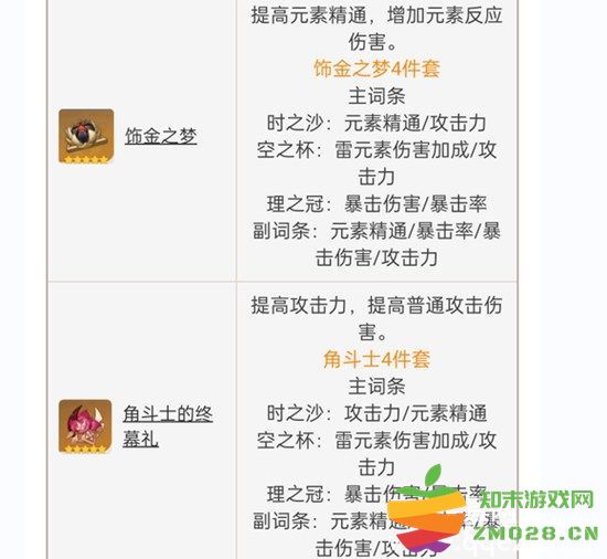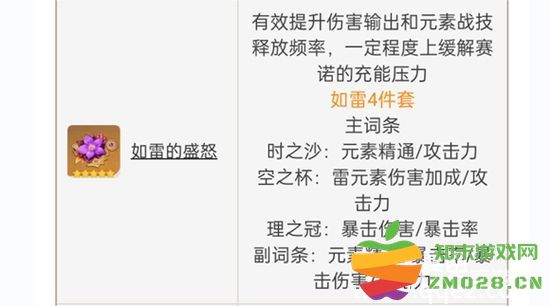2、除了如雷套,赛诺也可以带饰金套或者角斗套。饰金套可以提高元素精通,增加元素反应伤害。角斗套则可以提高攻击力和普通攻击的伤害。