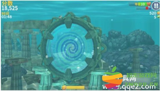 进入伪海域,伪冰海在锤头鲨的初始海域进入成功率比较高,尽量以45度角,从左往右飞,吃到飞鸟,出现慢动作时,点击海螺,进入暂停,等待几分钟后,进入成功。在伪海域里面你就放吃吧,尽情的捞金币和赚取高分吧。