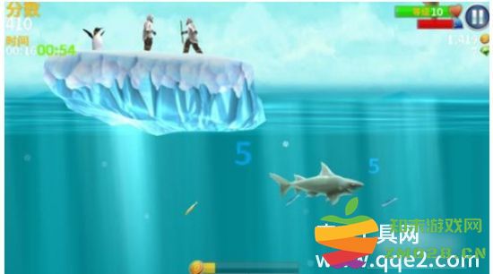 在南极有一个BUG,初始进入北极场景时,在冰面上会出现一些雪人和企鹅,先不要吃,继续向左游动直到场景尽头,画面会拉近。到达左边尽头时,再返回到刚才的冰面海域,会看到岛上多了几只企鹅,而且会有企鹅往海里跳,不要管也不要吃,再往左边游到看不见这个岛为止,然后再返回,会发现岛上的企鹅变多了,如上反复3、4次,岛上的企鹅就大爆发了。此时就可以在岛下面等几秒,等大批企鹅往海里跳,跳的比较多后再去吃,会看到很多金色的企鹅可以加速触发淘金币时间,然后就可以获得大量金币和分数了。吃完海面上的后还可以吃吃周围的浮上来或掉下来的,淘金时间过后再重复上面步骤,不过以后只需要往左边走一次再回来就会刷新巨量企鹅了。