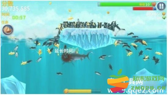 通过最初的初始海域,进入南极,吃里面的企鹅,人,冰激凌,鱼类会获得大量金币。因为每天只能进入一次南极,所以这里可以通过修改手机时间,达到间隔12小时的要求,就又可以进入南极刷金币了,反复以上操作,可以无限刷金币。