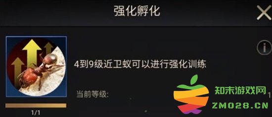 能对兵蚁进行强化训练,提高兵蚁的相关属性。建议根据主力兵种优先选择进化哦~