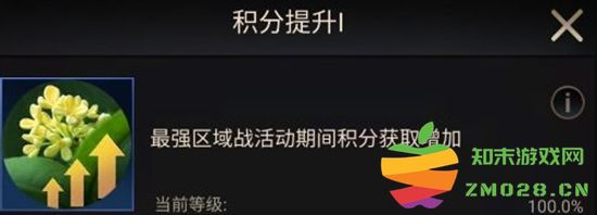 升级后可增加在最强区域活动期间所获取的积分,最高能提升100%的积分收益。