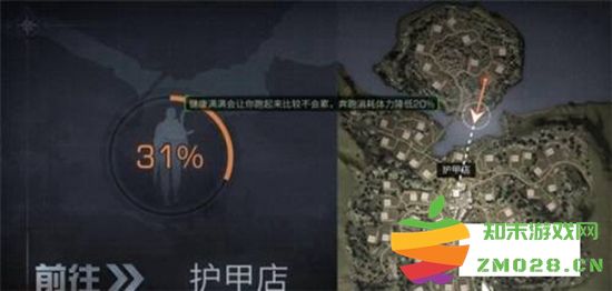 接着点击【快速前往】即可被传送到护甲店,进度条读完,就会站在营地护甲店门口。