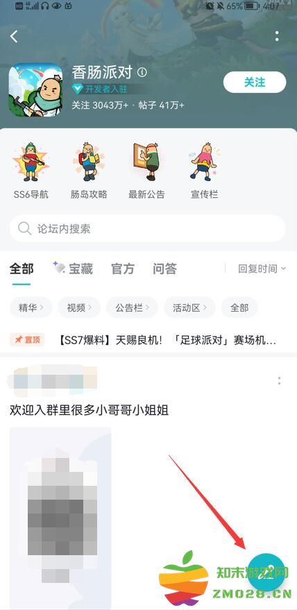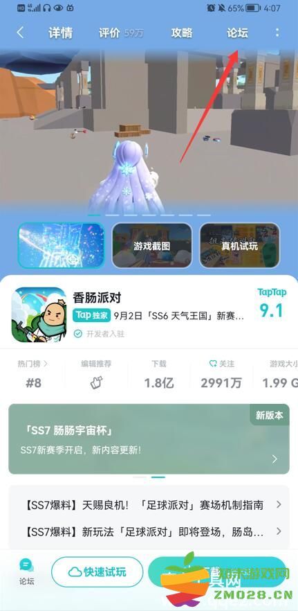 2、点击香肠派对这个游戏,点击右上角的论坛。
