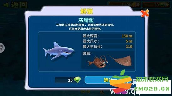 然后我们点击后面的灰鲭鲨,是需要我们花费25个钻石,虽然数量不是很大,但我们总不能每个都靠钻石来解锁吧?毕竟钻石比较难获取。