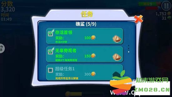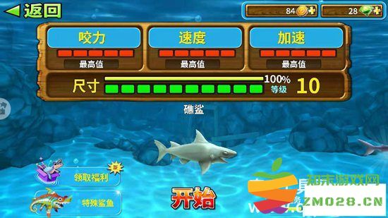 当新玩家进入游戏时,系统会赠送一个鲨鱼,就是樵鲨,所有的新玩家都需要靠这个鲨鱼来一步一步的练级,获取金币。