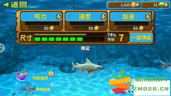 基本上每一条鲨鱼的解锁条件都有是钻石和金额两种选择,如果大家的钻石多,则不需要理会满不满级的事情了,但如果不够,那大家还是乖乖练级吧。