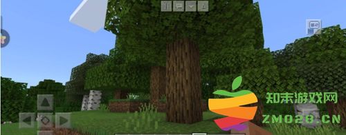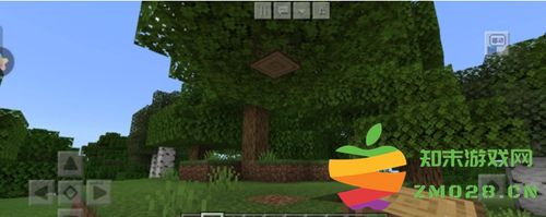 2、我们走到树跟前,操纵人物,对树干进行击碎,在击碎之后就会有掉落木块。