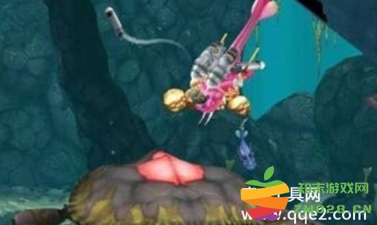 1、游到螃蟹上方,大概一个钳子的距离,差点被打的地方吸引攻击。