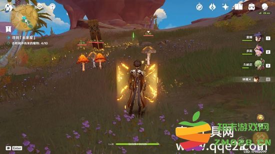 到达谜面位置,一共需要击杀10只蕈兽,第一波为两只浮游水蕈兽,两只浮游草蕈兽