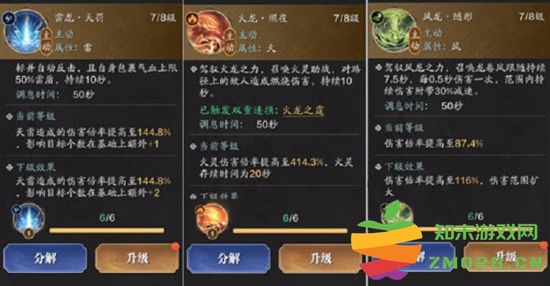 5、全火搭配:主动火虽然经历削弱,但依然是这版本最强的主动。特别是8级兵法自身存续时间达到了30S,再加上满级的增益【灵·化火】增加火灵9.4S的持续时间的辅助,简直如虎添翼。