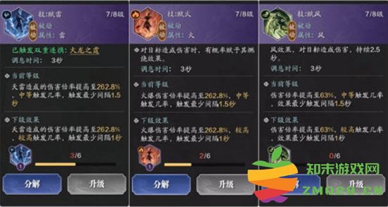6、兵法优先级:雷更多感觉是前期兵法,后期其高AOE伤害特性被被带有【升风】增益的风追上,而释放时间又不如有【蓄风】加持的风主动,连引以为傲的雷盾+回血还被风雷的麻痹所替代。所以后期推荐优先火,其次风,最后雷。