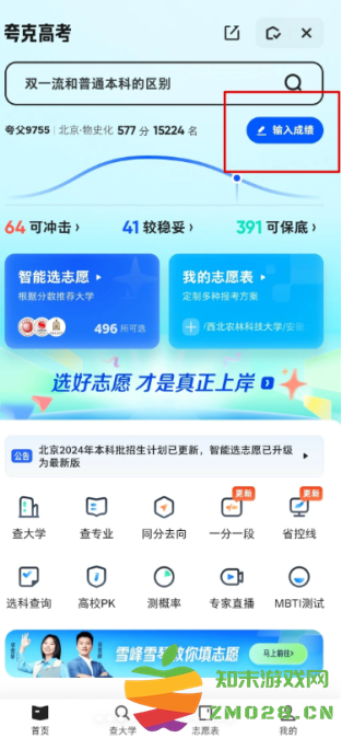 1,进入夸克高考频道,选择省市地区,输入成绩信息,找不到的点击更多--夸克高考进入;