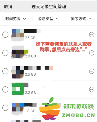 5,找下需要恢复的联系人或者群聊,然后点击旁边的三个点;