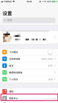 2. 进入“控制中心”设置:在设置菜单中,滚动查找并点击“控制中心”选项。