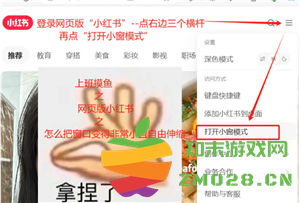 首先登录网页版小红书,随后点击右上角的三个横杠标志,再点击“打开小窗模式”。随后即将收获一个类似手机界面的小红书。