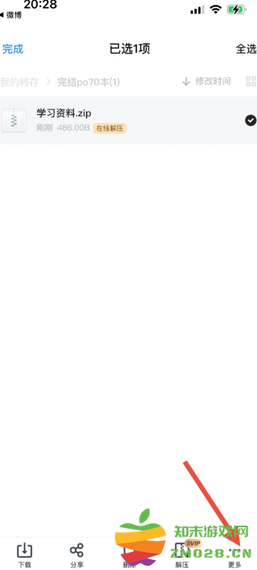 1,选择你要压缩的文件,然后点击底部的【更多--重命名】进入;