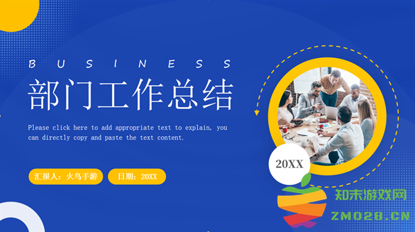 这是一套蓝黄配色简约商务风部门工作总结PPT模板,共25页;