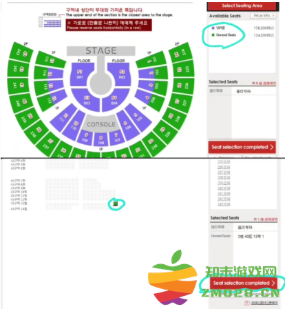 4. 选座:首先要进行人机验证,验证完后在页面右侧可以看到【available seats】,有分不同价格的座位,点击可展开选座;电脑可以快捷键tab+enter切换选区;看到座位亮起后点击座位,然后点【seat selection completed】