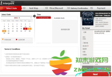 2. 登录itp,开票前1分钟打开你要抢的演唱会页面,不断刷新,到时间在窗口右边会显示购票按钮,选择日期和时间后,点击中文的【预订】,会弹出一个新窗口,后续步骤将在新窗口中进行。