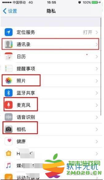 2. 滚动找到并点击需要访问照片的应用(如微信)。