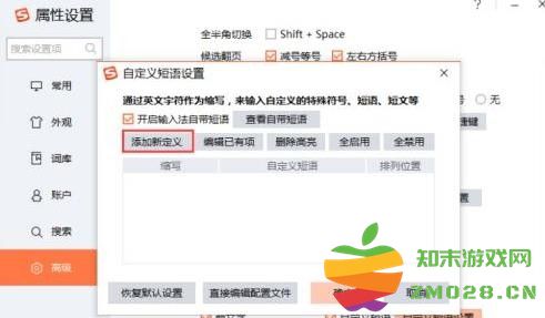 接着,点击自定义短语设置窗口内的“添加新定义”选项。