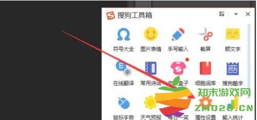 点击桌面右下角的搜狗输入法状态栏,选取“属性设置”选项。