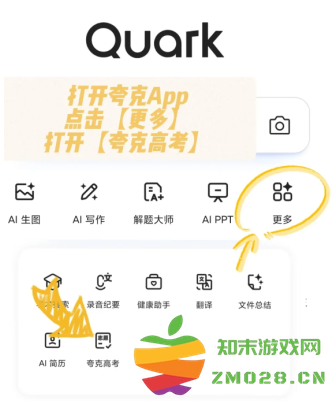 1,打开夸克APP,点击更多--选择【夸克高考】;